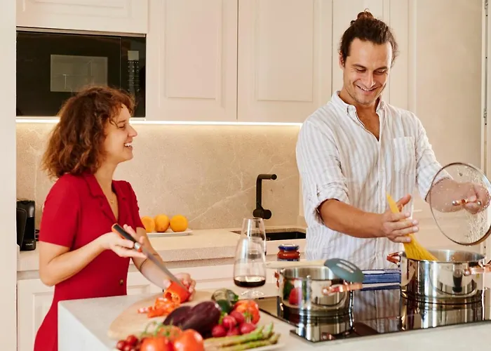 Dining becomes a delightful experience in each well-fitted kitchen, equipped with modern amenities, including a refrigerator, stovetop, and microwave. Guests can whip up culinary delights amidst the ease of a bright dining area or venture out to explore nearby eateries that reflect Mallorca's gastronomic richness.